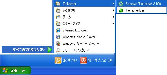 【スタート】⇒【すべてのプログラム(P)】⇒【Tickerbar】⇒【Remove Tickerbar X.XXX】を